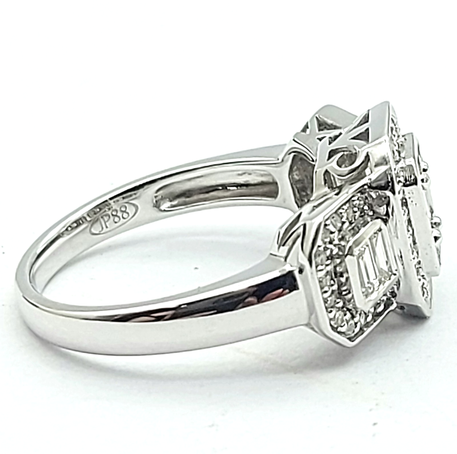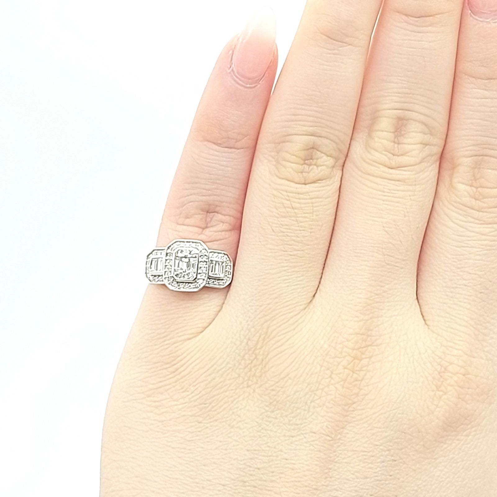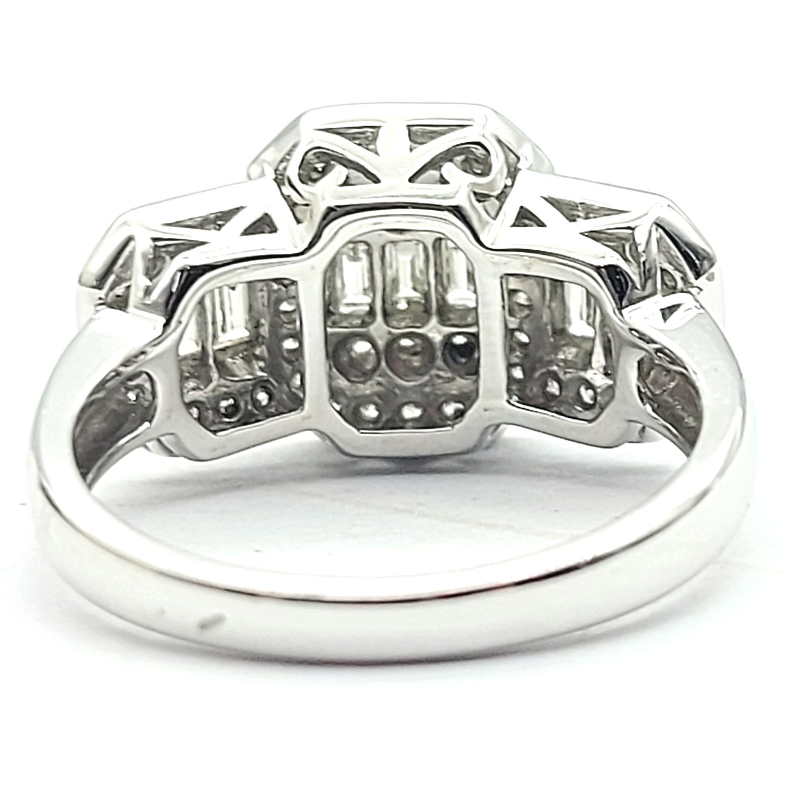 Ladies White Gold 9ct (375, 9K) Natural Cluster Diamonds Baguette Trilogy Ring