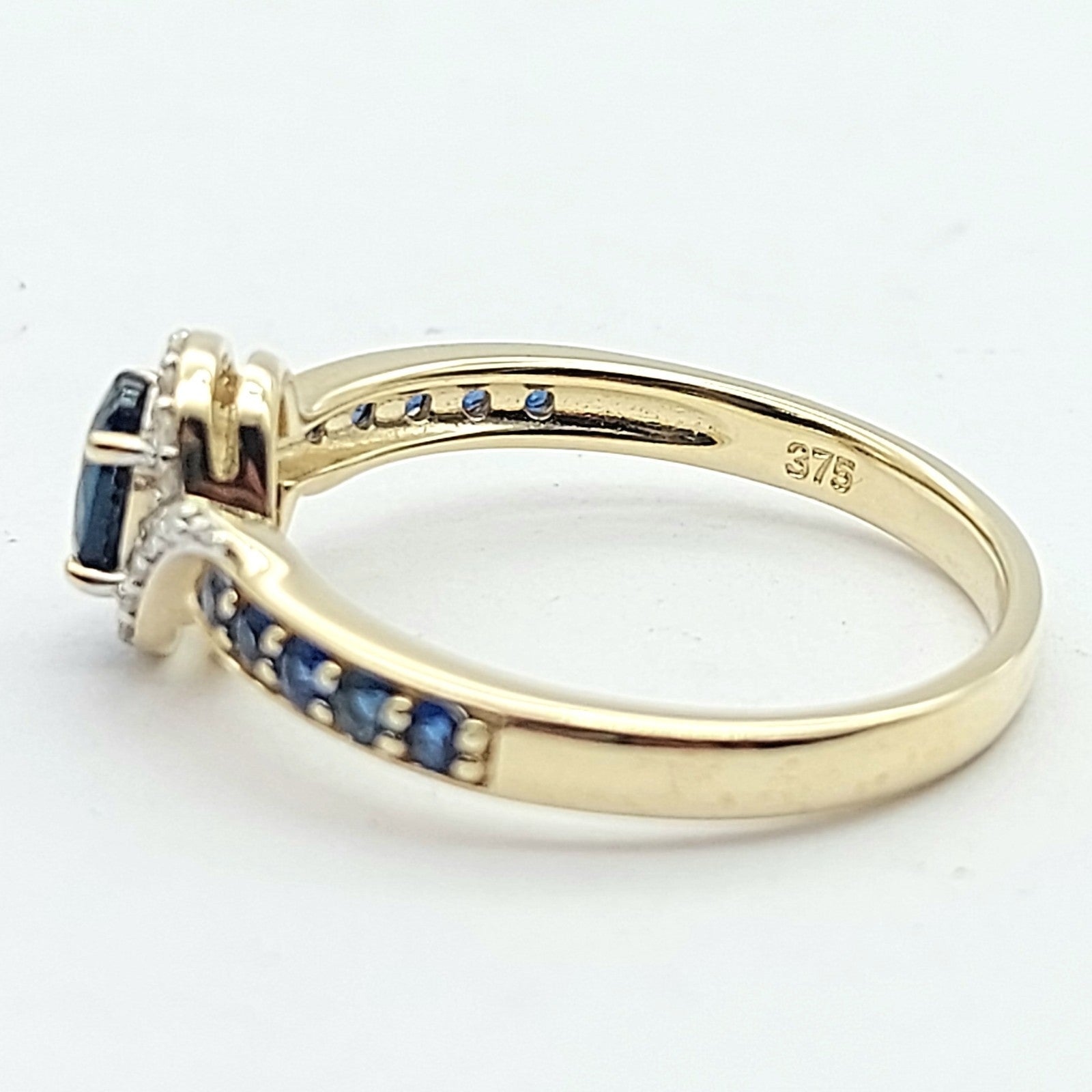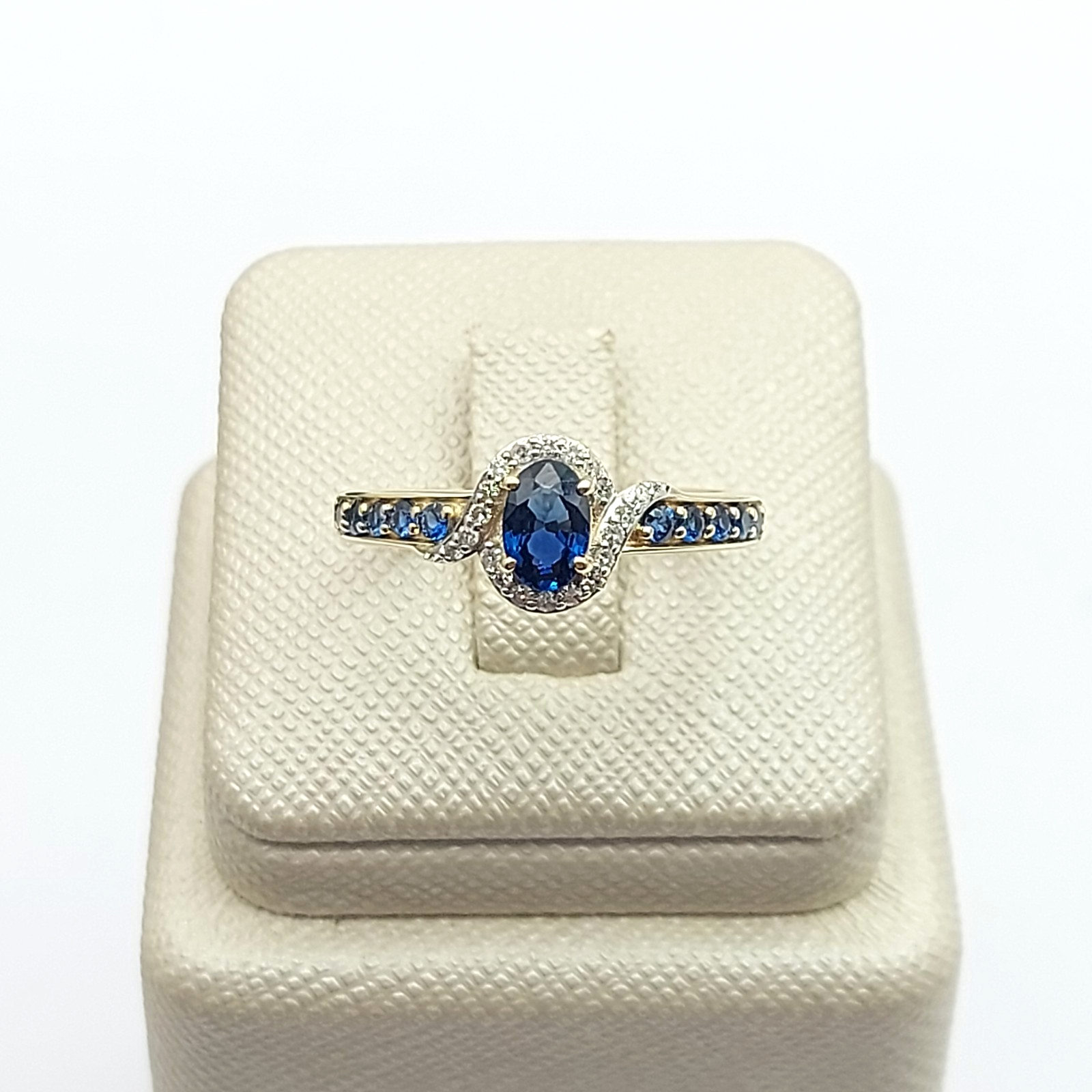 Ladies Yellow Gold 9ct (375, 9K) Natural Oval Sapphire & Diamonds Dress Ring