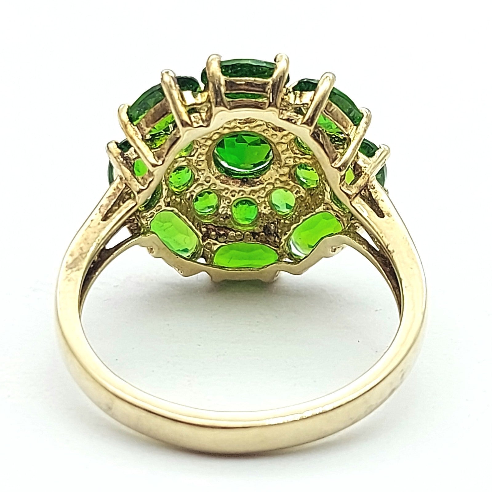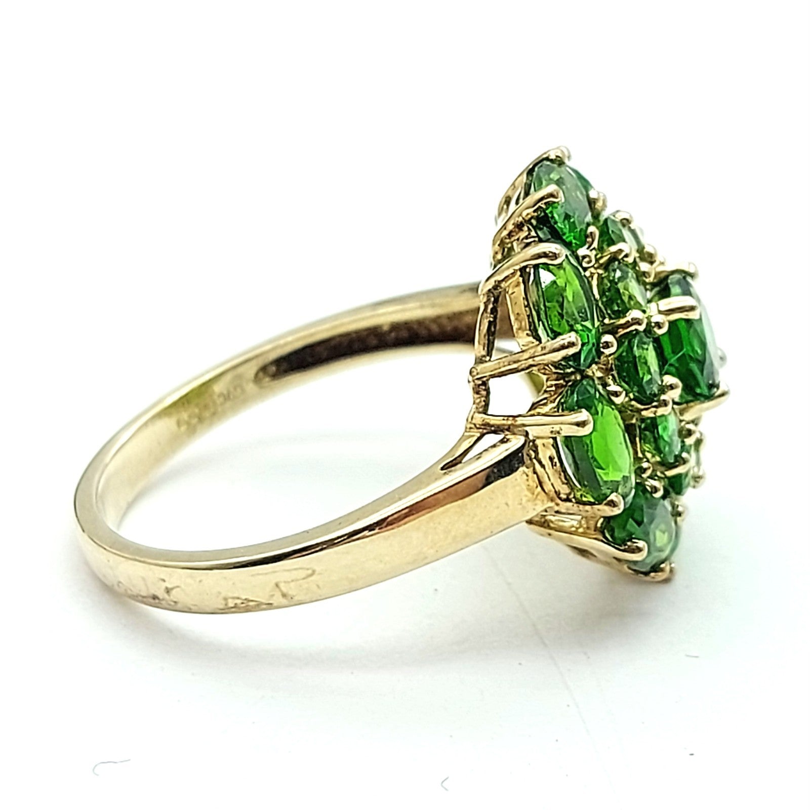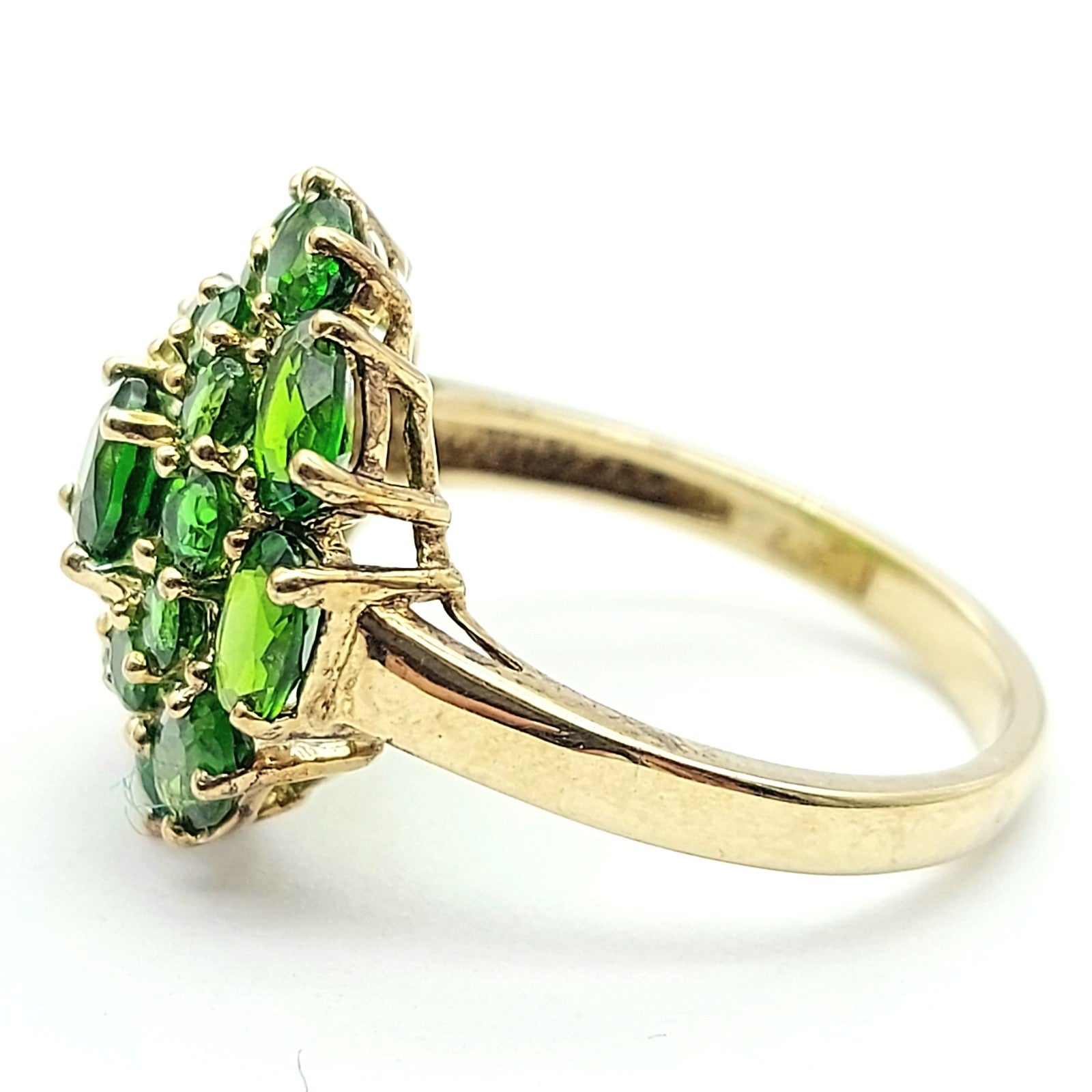 Ladies Yellow Gold 9ct (375, 9K) August Birthstone Natural Peridot Top Cluster Flower Ring