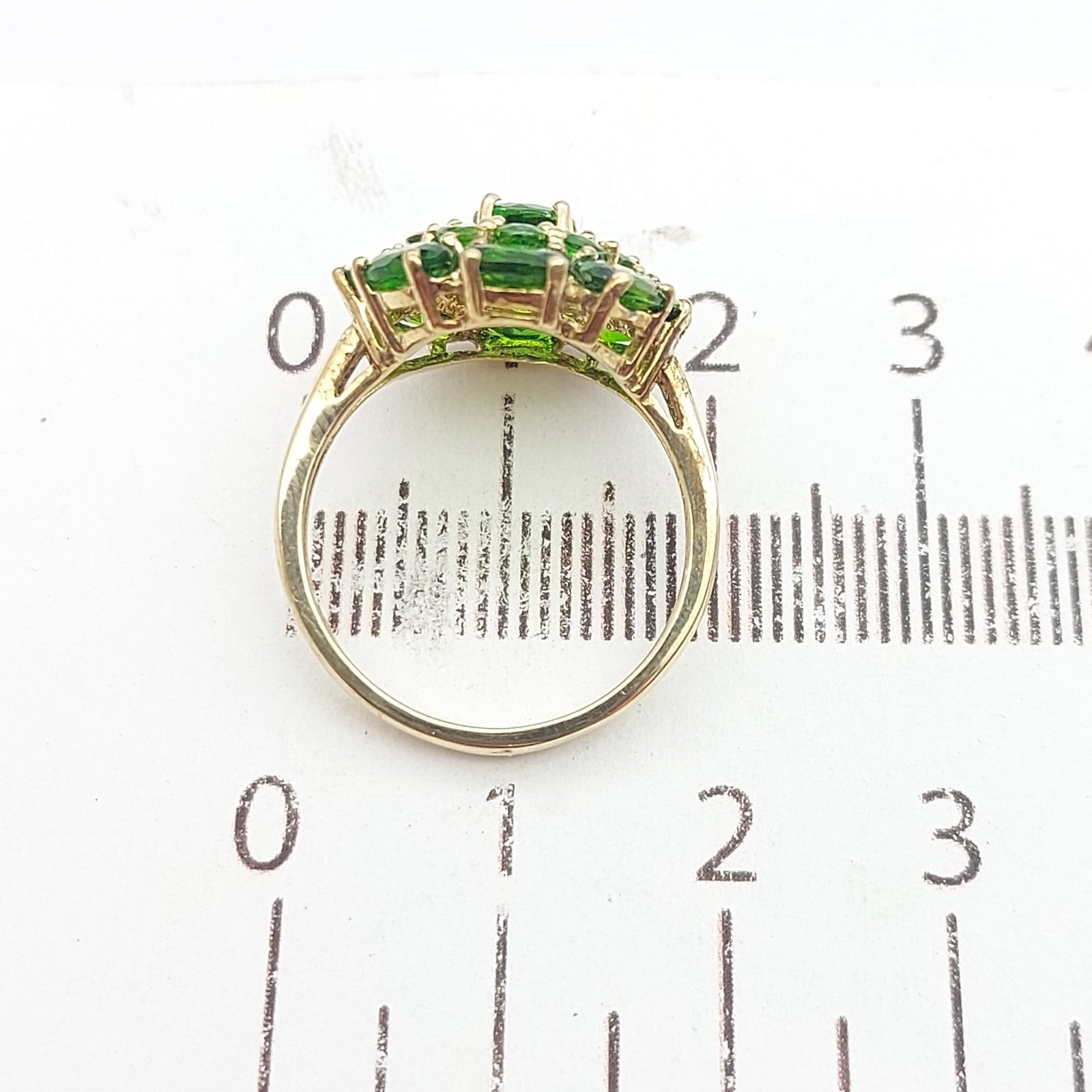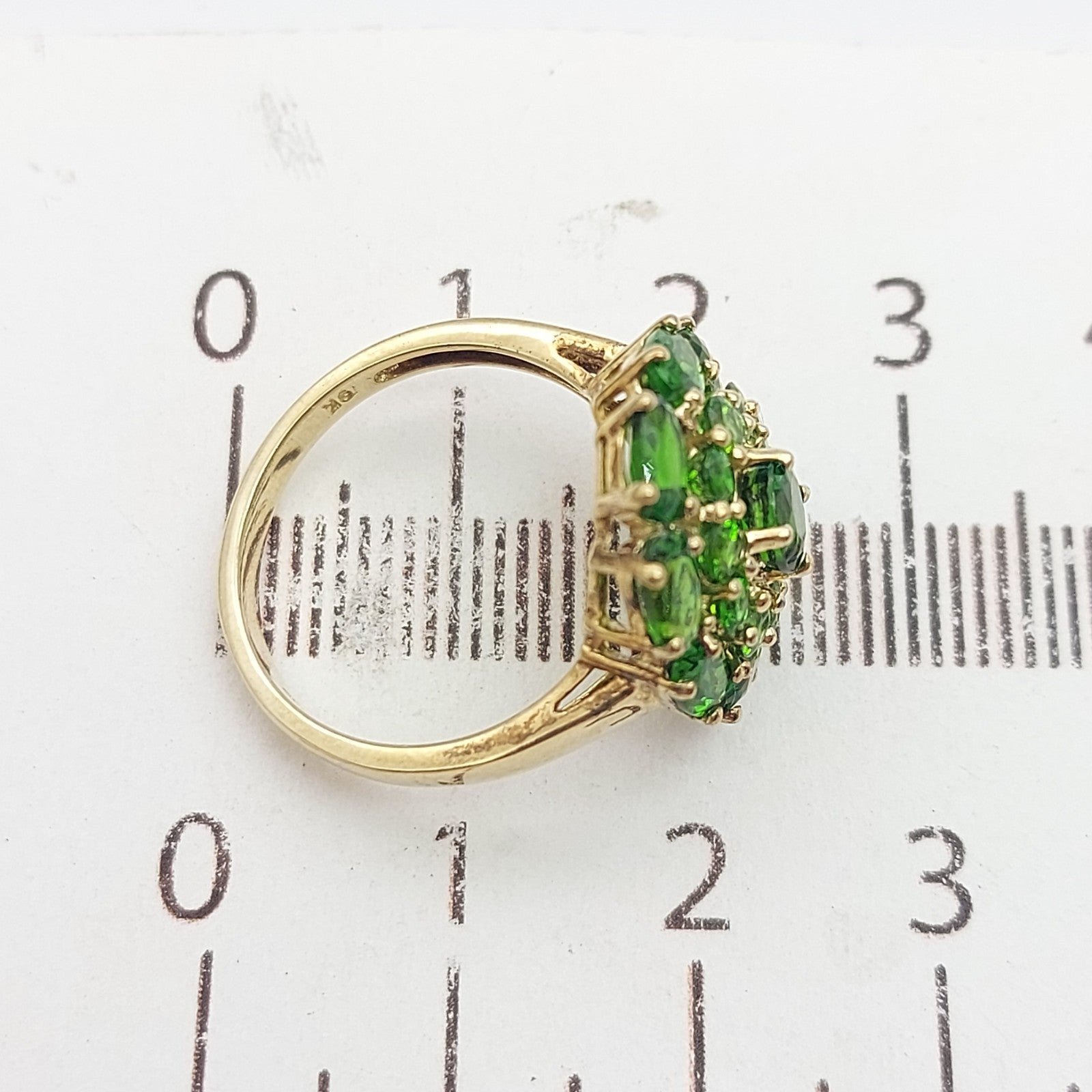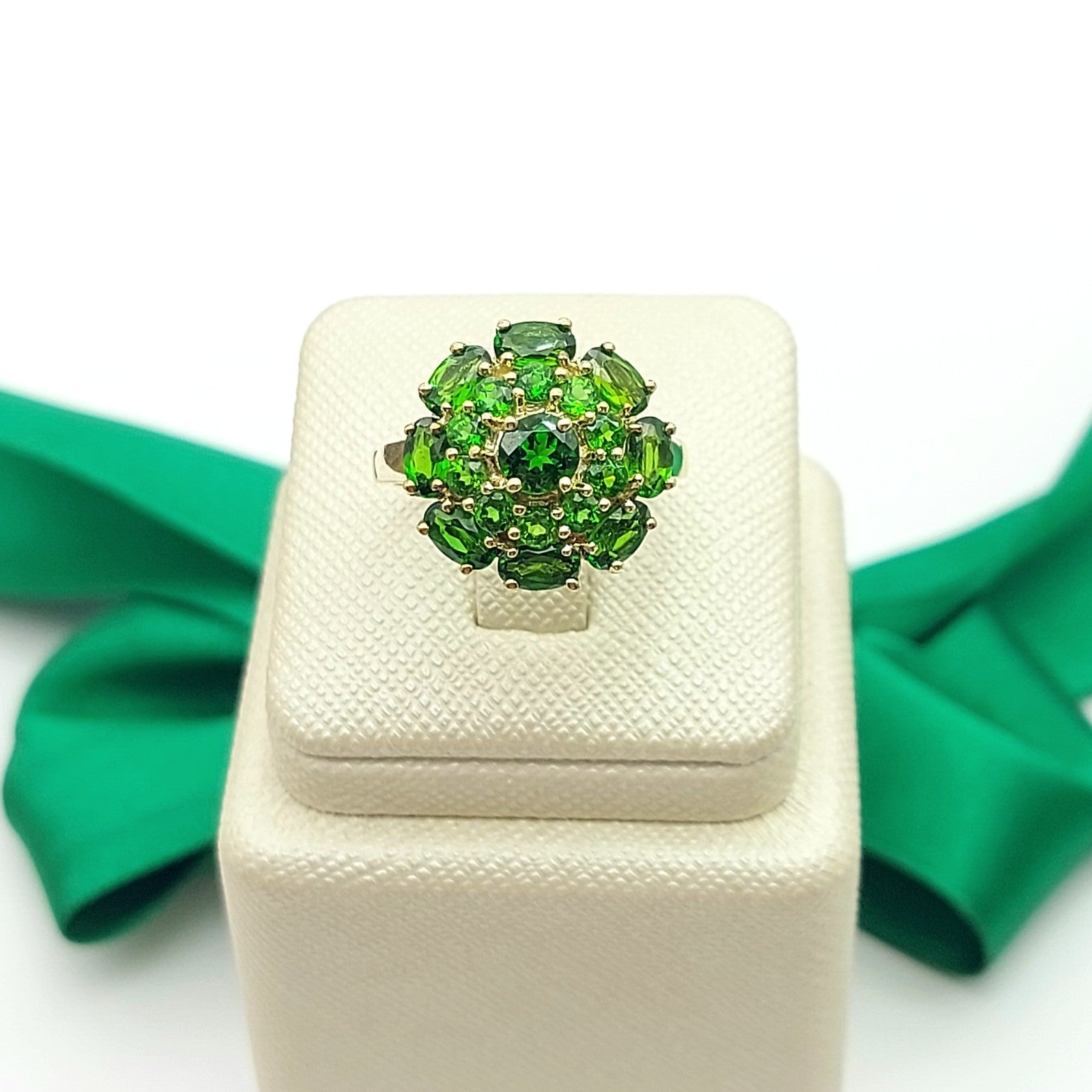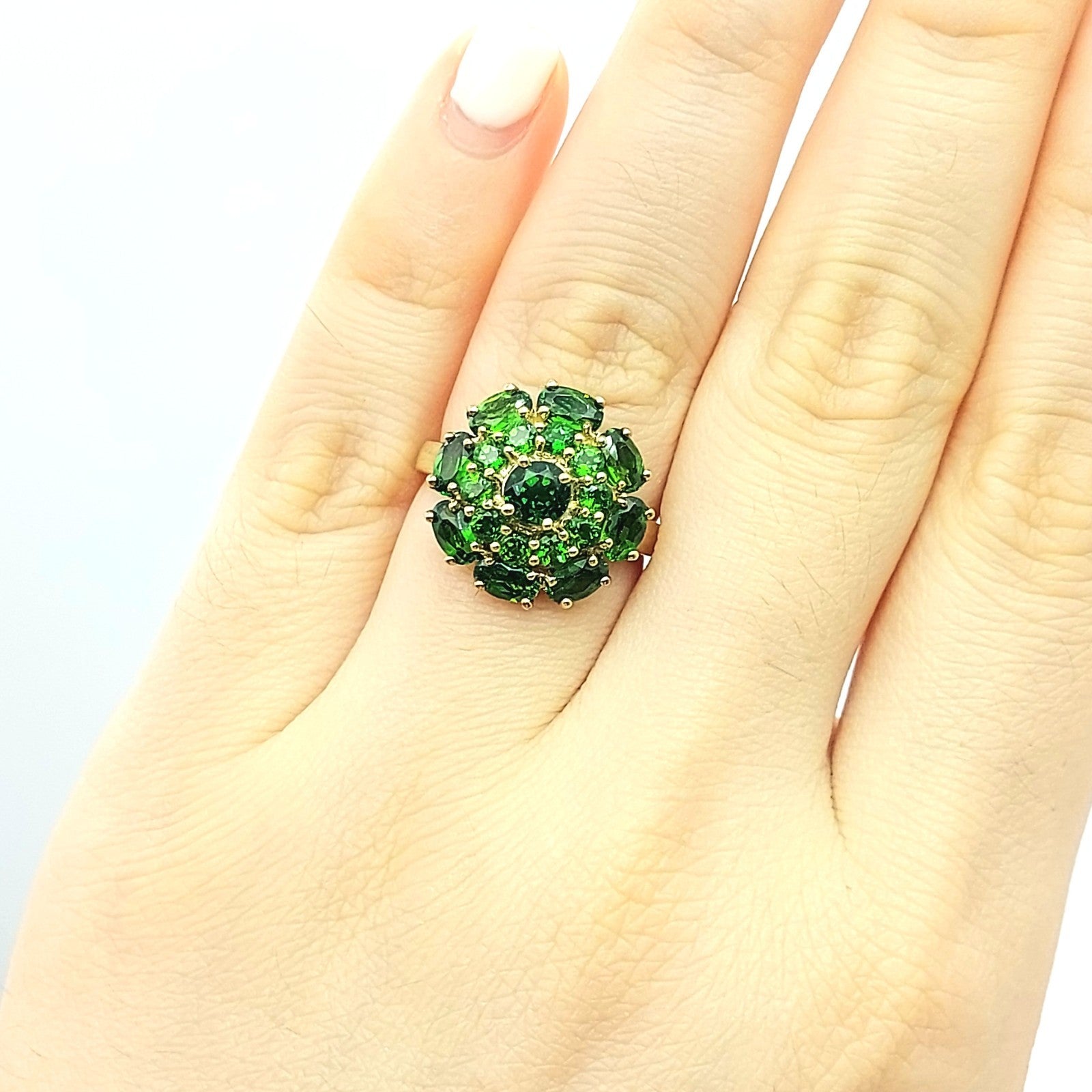 Ladies Yellow Gold 9ct (375, 9K) August Birthstone Natural Peridot Top Cluster Flower Ring