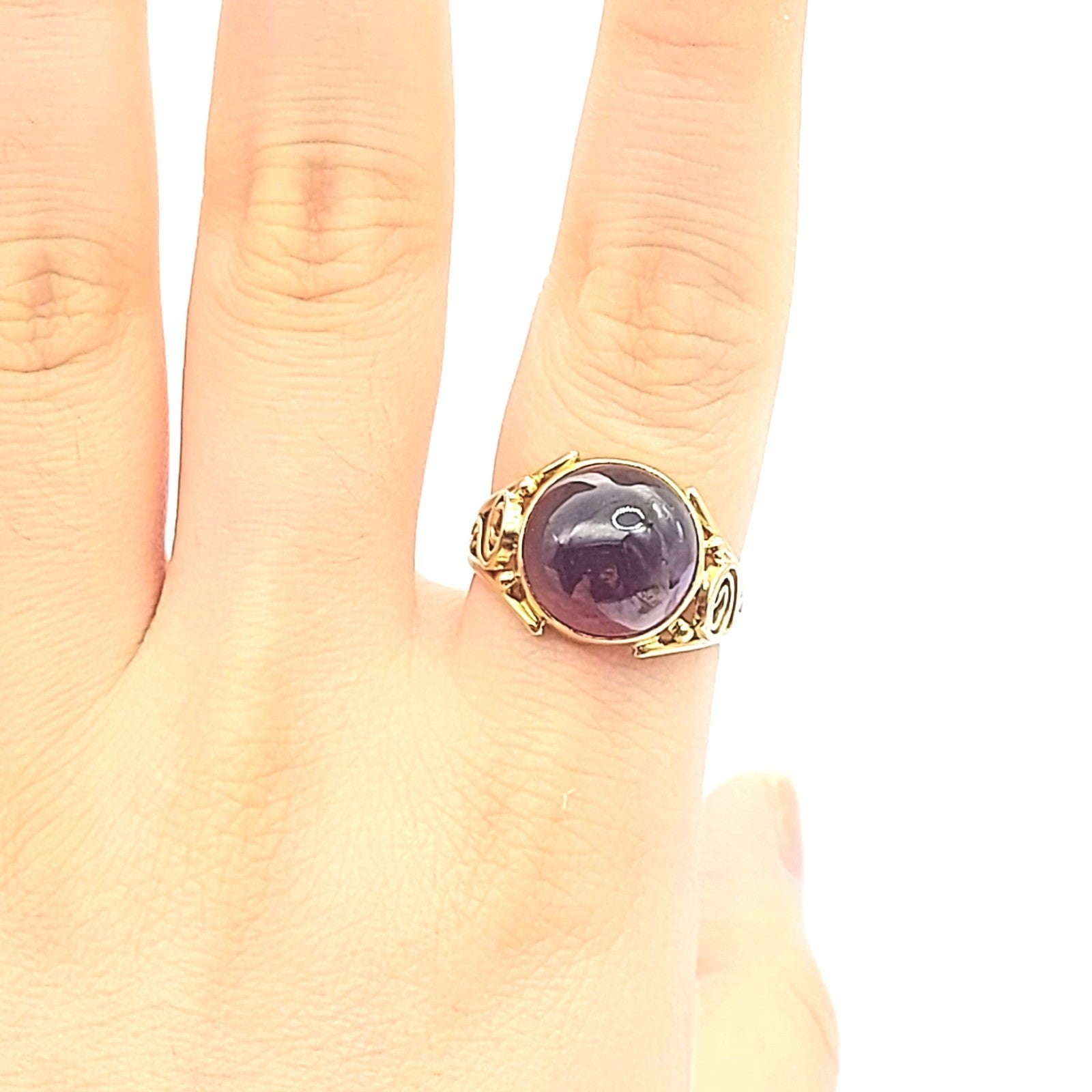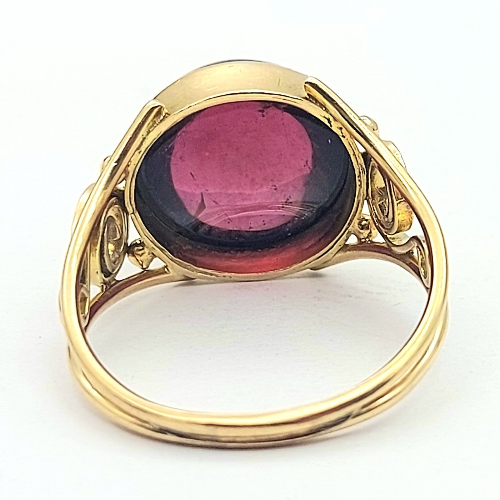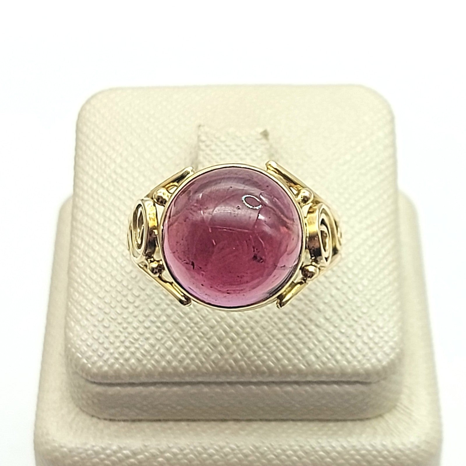 Ladies Yellow Gold 9ct (375, 9K) Round Natural Pink Tourmaline Modern Vintage Filigree Ring