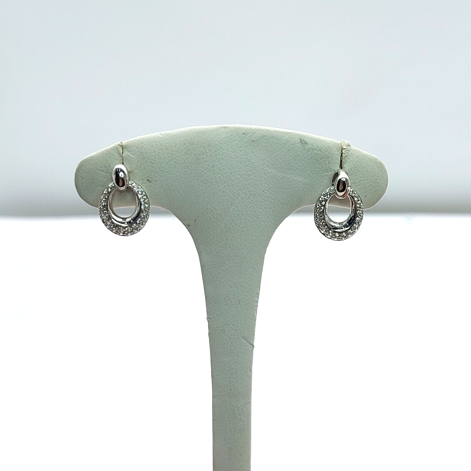 Ladies Silver Earrings (925) Sterling Silver Heart Shaped Diamante Earrings
