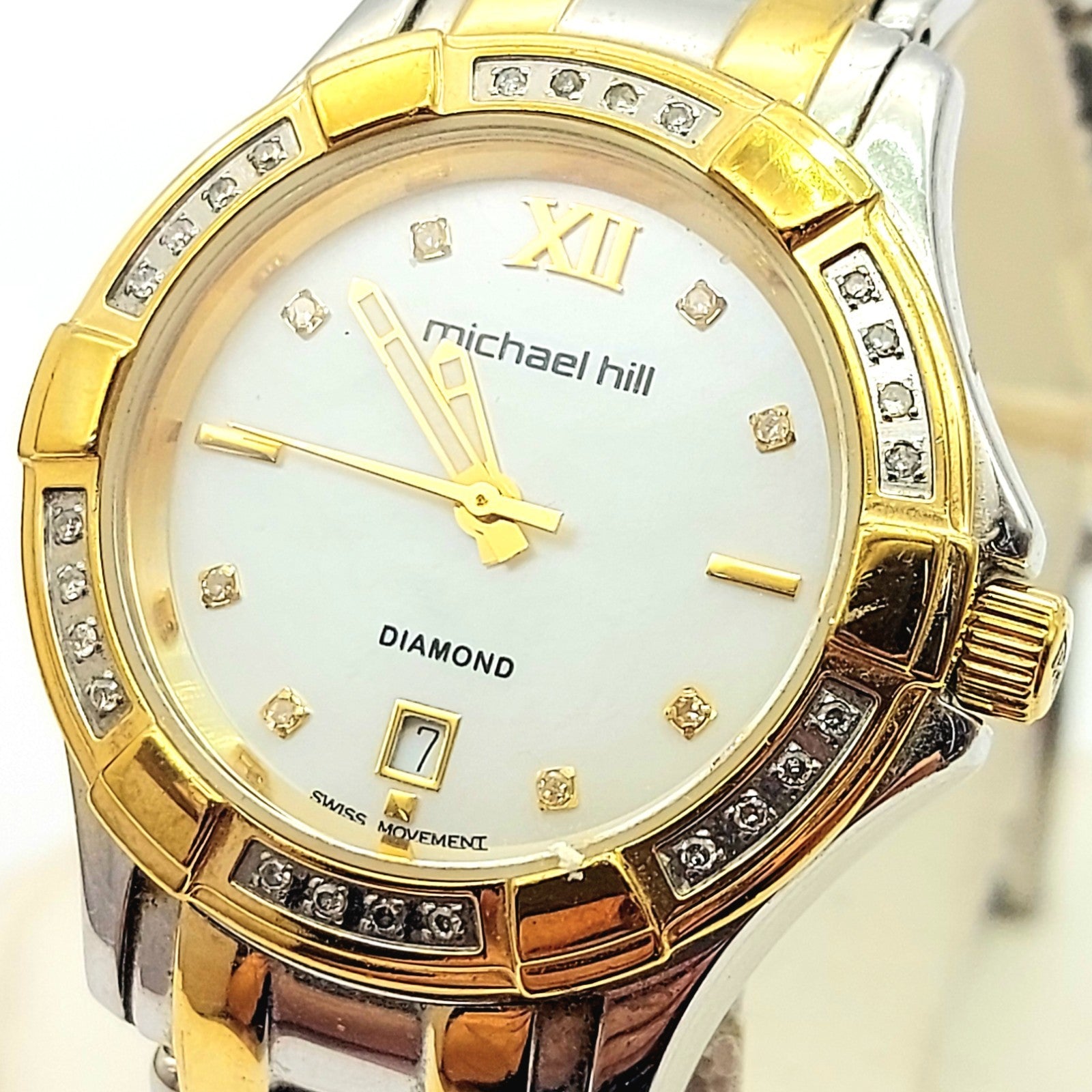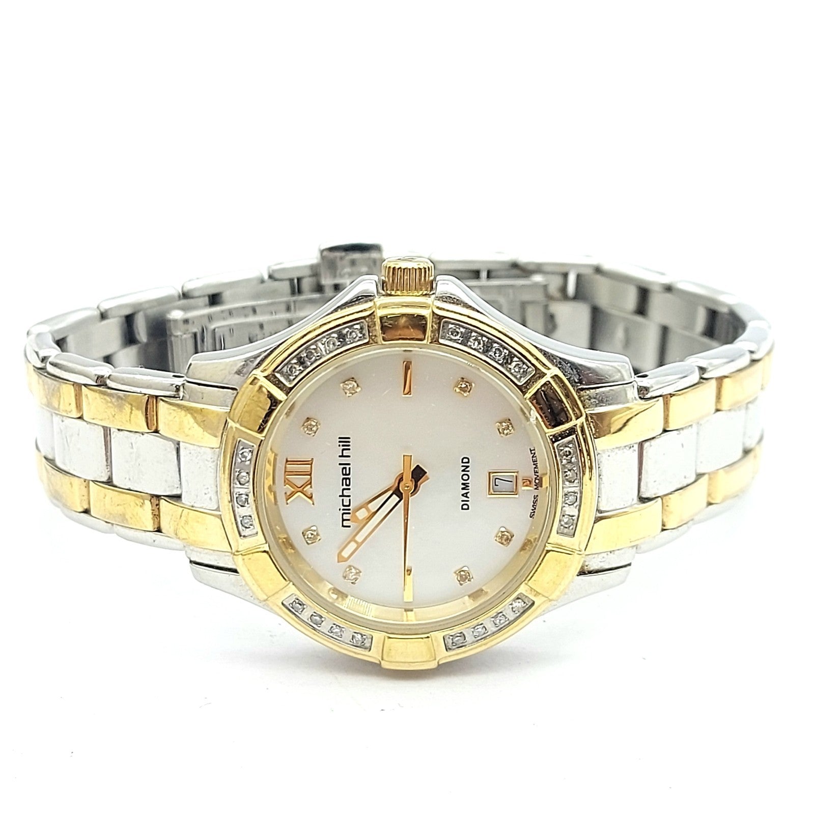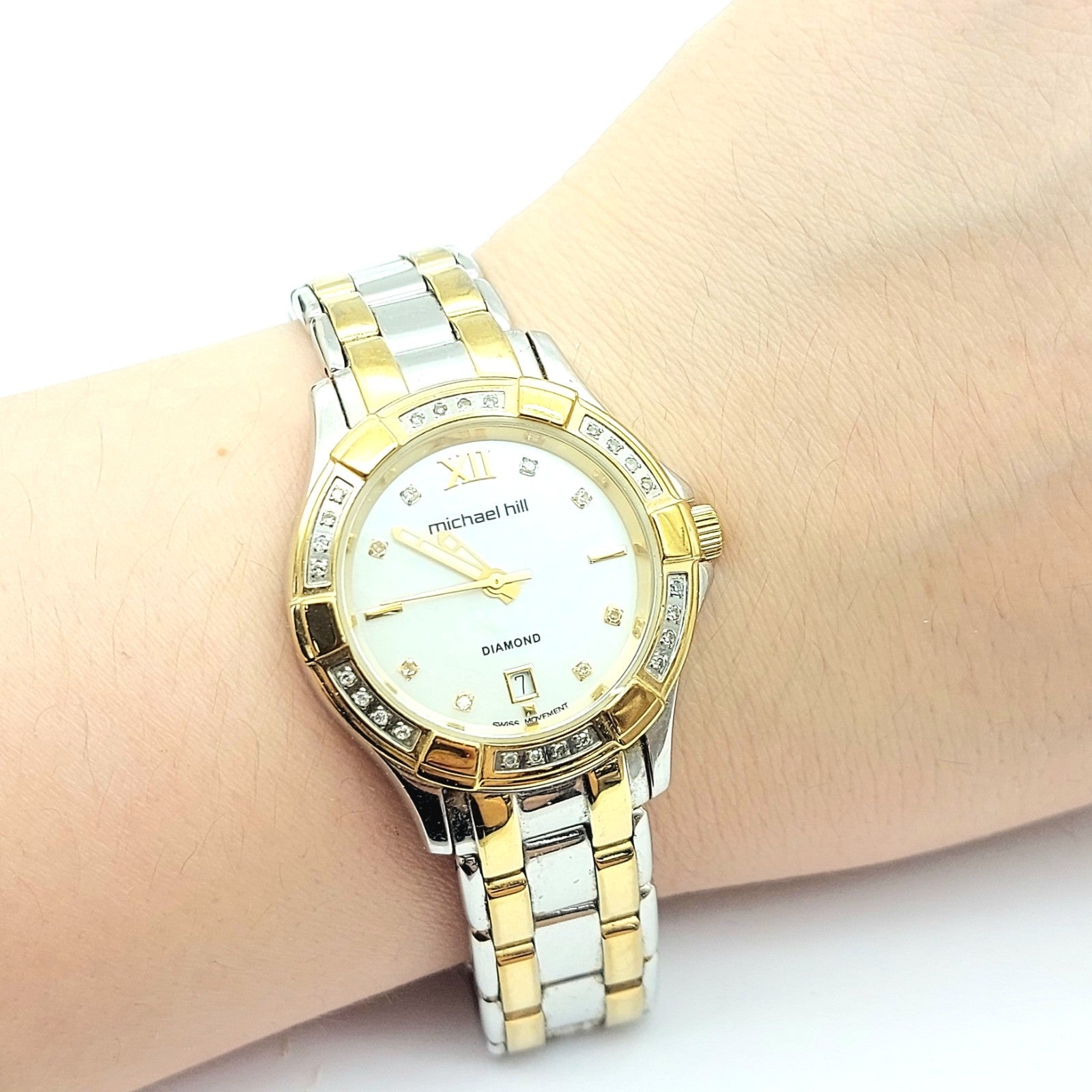 Ladies MICHAEL HILL 9210 Diamond Bezel Two-Tone Round Stainless Steel Watch 30mm