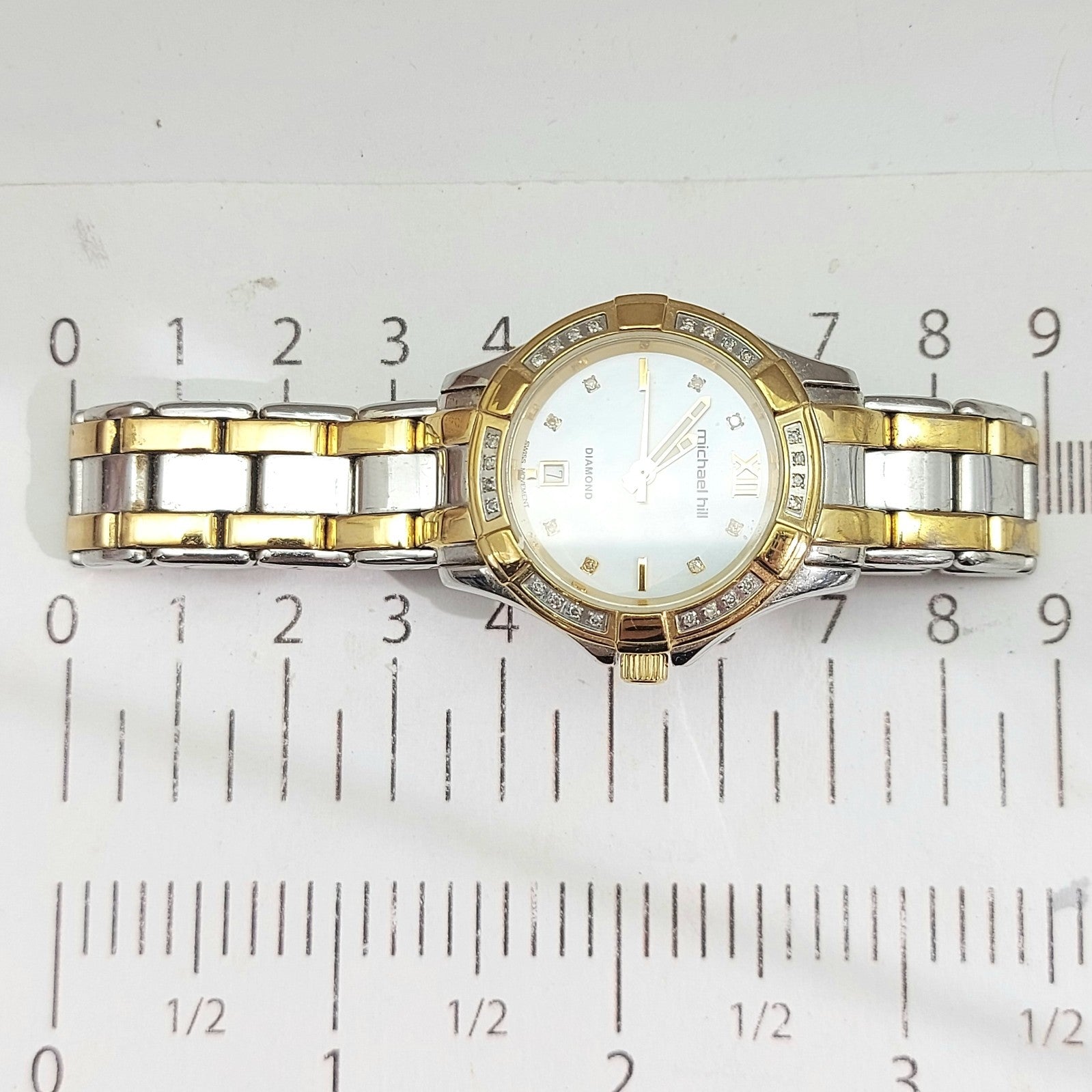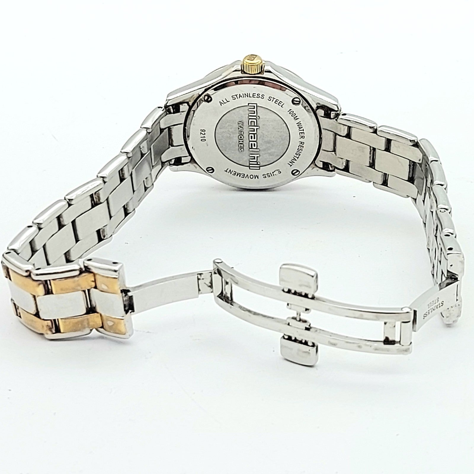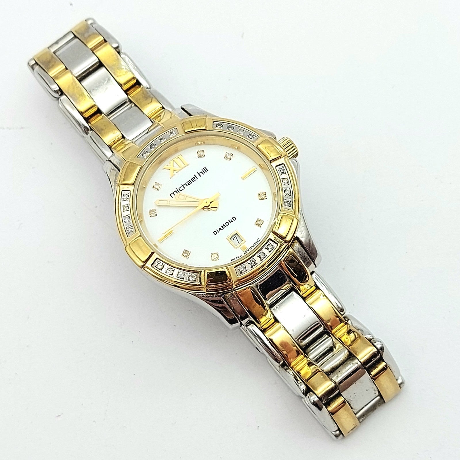 Ladies MICHAEL HILL 9210 Diamond Bezel Two-Tone Round Stainless Steel Watch 30mm
